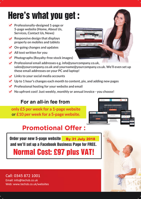 Professionally designed websites for tradesmen, business start-ups and one man bands from only £5 per week & no upfront costs!